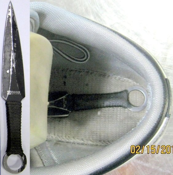 TSA在圣迭戈国际机场查获的鞋中剑。