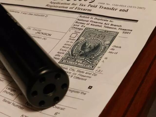 贴在购买消音器申请表上的200美元印花税票。