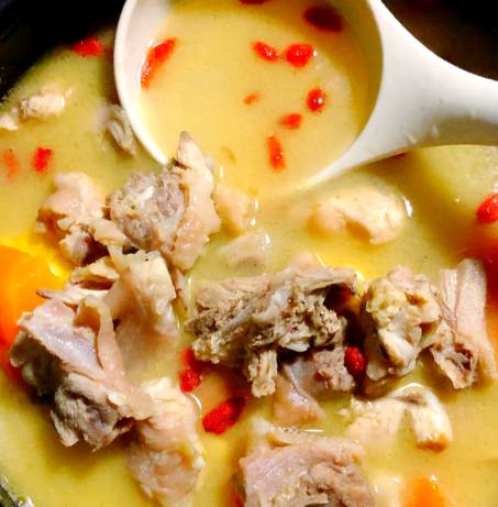 婴幼儿辅食:鸡骨架熬汤后过滤骨渣,搭配胡萝卜泥,补充维生素A;